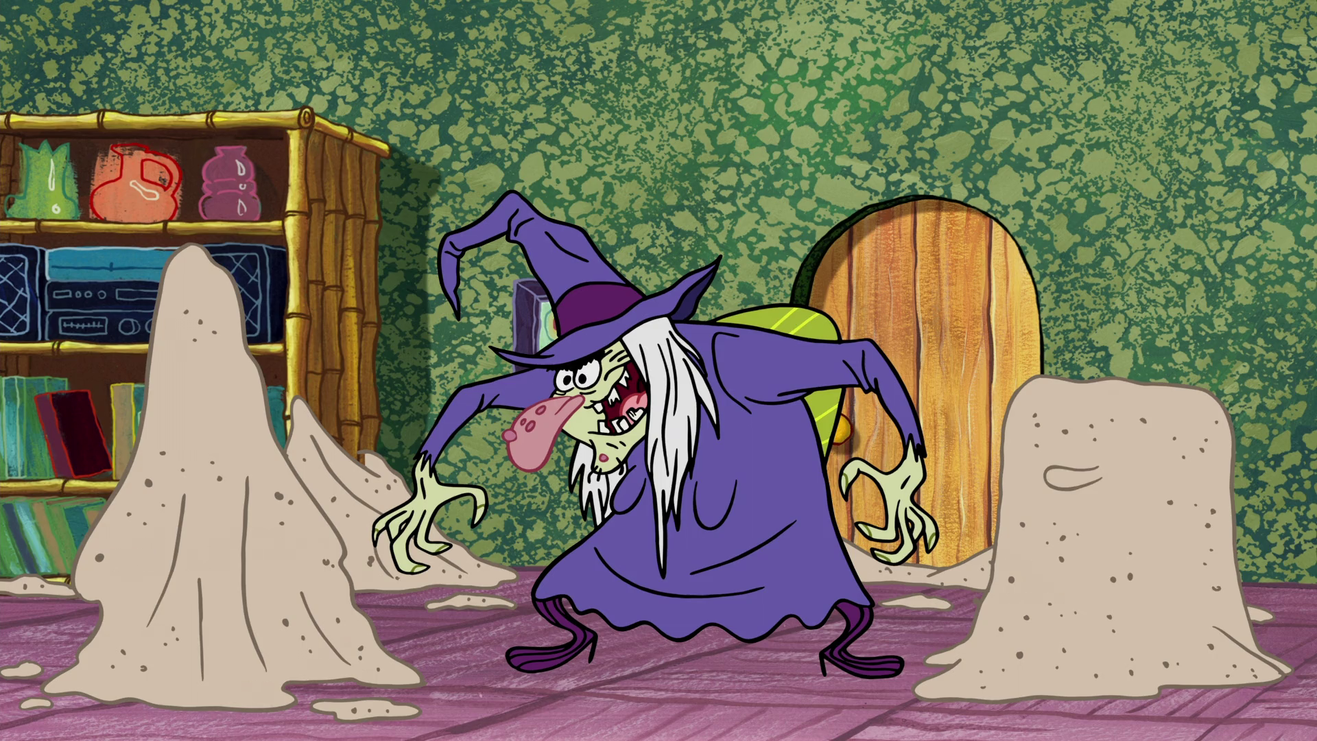 This story can be re-written as a story about spongebob being confronted by a witch. A witch under the sea would a be an interesting story.
